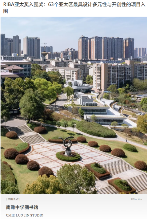 2025年9月17日,英國皇家建筑師學會(RIBA)公布首屆亞太獎入圍項目,展示了該地區最具創意和影響力的建筑。我司監理的長沙市南雅中學圖書館成功入圍英國皇家建筑師學會(RIBA)亞太獎。